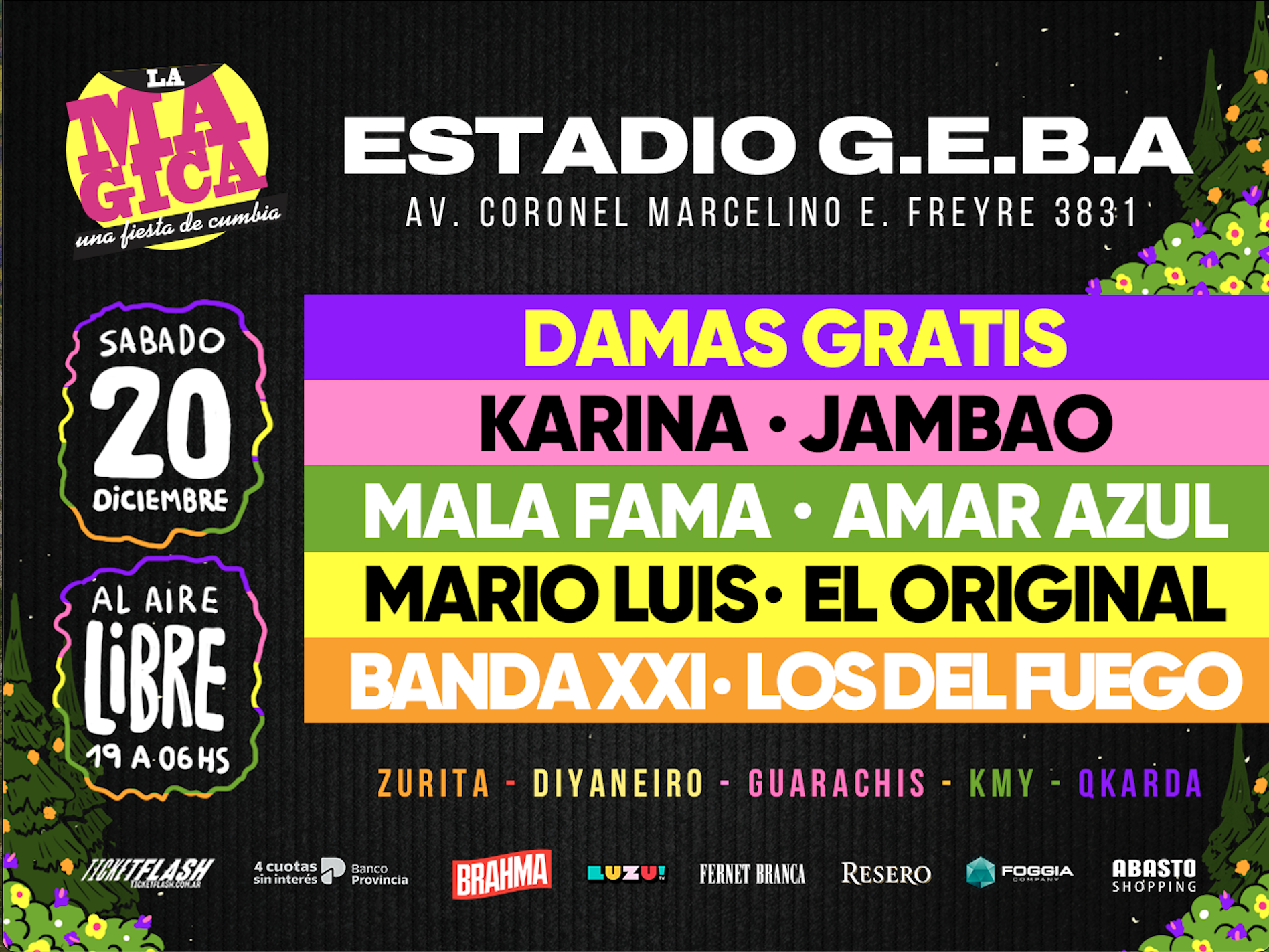 Consolidada como un fenómeno sociocultural, La Mágica celebra sus 15 años de historia y lo hace por partida doble. Después del éxito arrollador de su primera edición aniversario, la fiesta de cumbia más grande del país vuelve con una segunda cita épica: “La Mágica 15 Años 2.0”, el sábado 20 de diciembre en el Estadio GEBA. Porque una sola fiesta no alcanza para resumir una década y media de música, baile y comunidad, La Mágica redobla la apuesta con una grilla histórica que reúne a los máximos exponentes de la cumbia argentina: Damas Gratis, Karina, Jambao, Mala Fama, Amar Azul, Mario Luis, El Original, Banda XXI y Los del Fuego, junto a DJ Zurita, DJaneiro, Guarachis, KMY y Qkarda en las bandejas. Desde sus inicios, La Mágica logró lo que pocas fiestas pueden sostener en el tiempo: unir públicos diversos de todas las edades, estilos y clases sociales bajo un mismo ritual colectivo —bailar cumbia sin parar—. |